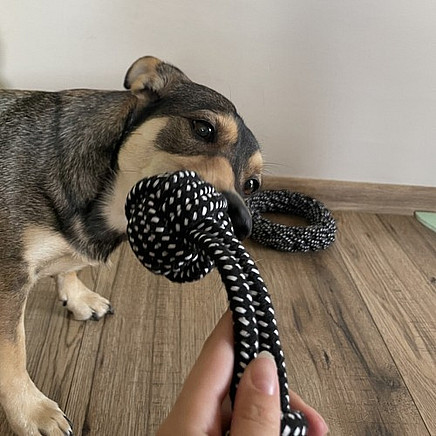 - TUG ROPES - these are not only toys that provide entertainment , but also dog jaw exercise tool and satisfying the natural instincts of tugging and grabbing . Playing together with tugs strengthens the bond between owner and dog , creating stronger relationships. Additionally, Cotton rope naturally cleans your dog's teeth through friction , which has a positive effect on the health of his teeth and gums.