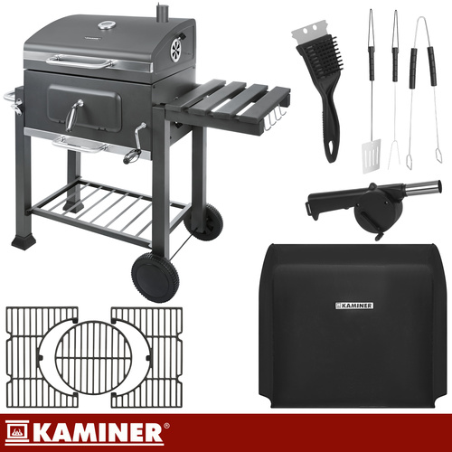 Tired of grills that wobble after the season, quickly lose paint, and don't maintain temperatures? KAMINER This is a sturdy grill with an indestructible cast iron grate, a 1mm thick sheet metal, a lid with a thermometer, and adjustable firebox height, making it easier to achieve perfect doneness . You also get practical accessories and a cover to keep the grill ready for your next garden get-together.