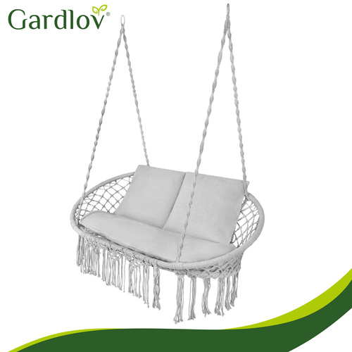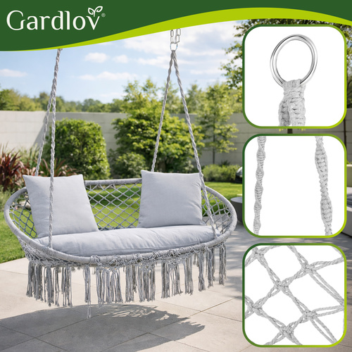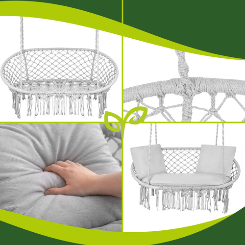 Stork's nest garden swing, large, two-seater, solid, 300 kg with a cushion Gardlov double gray stork's nest swing - 300kg two-seater hanging chair + 3 pillows, relaxation for the whole family