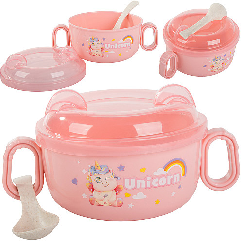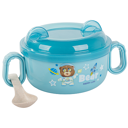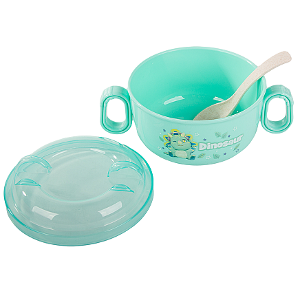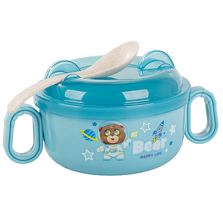 A practical set consisting of a bowl with a lid and a spoon is the perfect solution for parents who value convenience and functionality while feeding their baby.