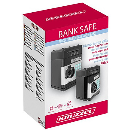 - SPECIFICATION – manufacturer: Iso Trade; brand: Kruzzel; the door opens after entering the 4-digit PIN code; ability to enter your own password; for banknotes and coins; child's age 6+; ability to change sounds aloud; after 20 seconds the safe reminds you that the door is open; dimensions: 19.5 x 13 x 12 cm; weight: 0.55 kg; weight in package: 0.67 kg.