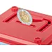 ✅ Insert the coin through the small hole on top of the moneybox.