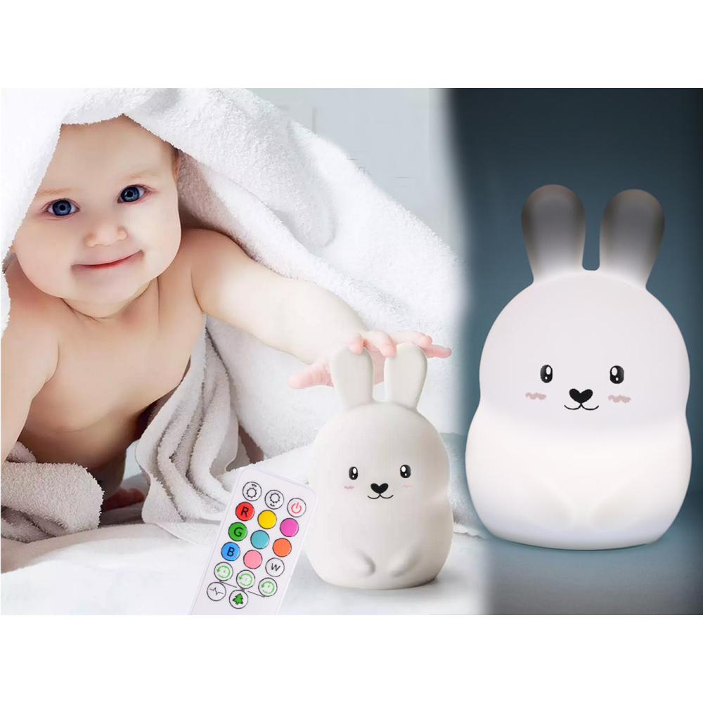 CHILDREN'S LED NIGHT LIGHT SILICONE RGB TOUCH USB RECHARGEABLE REMOTE CONTROL BUNNY
