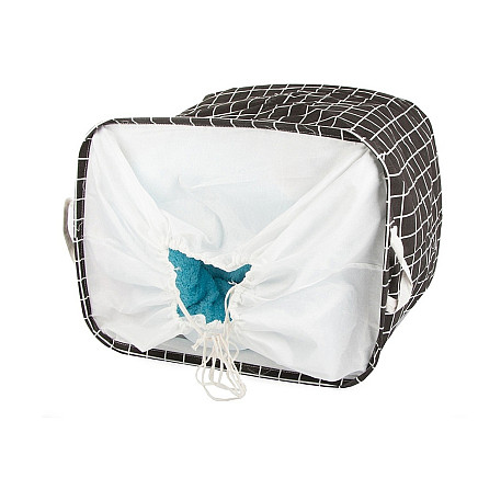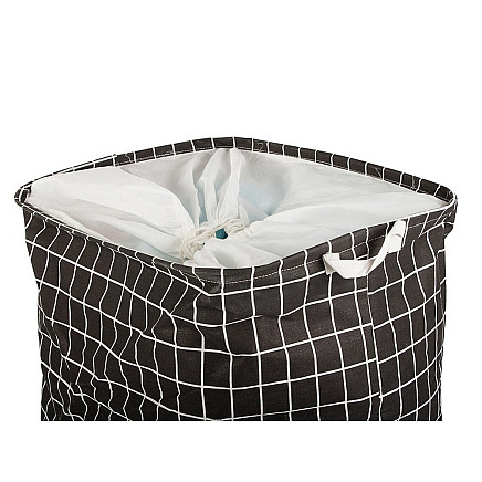 The hamper features a matrix cord closure that can be knotted or turned inside or outside the hamper as required.