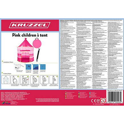 - SAFE - the tent is made of high-quality synthetic material that is resistant to damage. In addition, it has a stable frame that will allow your child to play safely. The tent does not have sharp edges, so the child will not hurt himself .