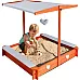- ADJUSTABLE HEIGHT ROOF - the most characteristic element of the sandbox with a roof is a wooden structure in the shape of a roof, which constitutes a roof over the sandbox area. The canopy protects against the sun, providing children with shade while playing, and protects the sand from rain and excessive moisture , which can make playing more difficult. Additionally, the roof is adjustable in height, and when lowered to the bottom, it closes the sandbox.