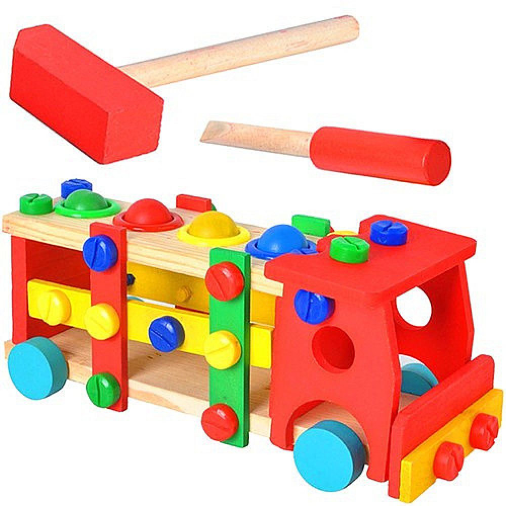 - ACCESSORIES INCLUDED – the set contains many elements for self-screwing and unscrewing. In addition to the truck, the set also includes wooden balls, a screwdriver and a hammer, which definitely makes the fun more attractive.