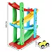 - 5 ELEMENTS IN THE SET - the toy consists of 5 elements: a slide with 4 tracks and 4 cars (green, blue, red and yellow). The whole thing is made of wood and painted with paint that is harmless to children. It is a safe and ecological alternative to toys made of plastic .