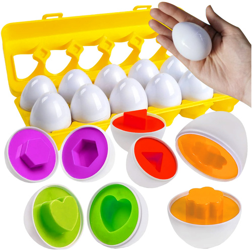 Egg sorter, Montessori educational puzzle, match shapes colors 12 eggs - development through play!