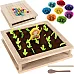 - DOUBLE-SIDED 2-in-1 GAME - BUBBLE SHOOTER AND MNEMORY FARM – the set has a wooden matrix on one side that is used to play marbles, and the other side is a memory farm. There are cards for the memory game that indicate what we should find in our garden this time.