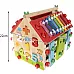 - MULTIFUNCTIONAL HOUSE EDUCATIONAL _ – on each side there is a different creative toy that influences the child's development. There are cymbals, 2 x shape sorters and a punch!