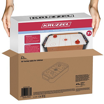 - TABLETOP VERSION OF THE GAME – an attractive version of the popular air hockey will allow you to enjoy the fun in your own home and at any time. It will provide a lot of excitement. The air hockey set consists of a table, 2 bouncers, 2 pucks and 2 goals. The arcade game is a fantastic way to spend time in an interesting way, for both children and adults . It provides a lot of impressions and emotions.