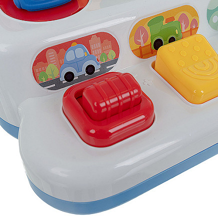 development through play – the child exercises hand-eye coordination, dexterity and logical thinking by pressing buttons and watching the vehicles appear