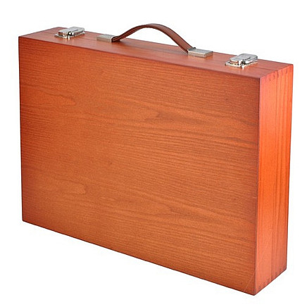 Mākslinieka zīmēšanas gleznošanas piederumu komplekts koka kastē koferī bērniem 174...