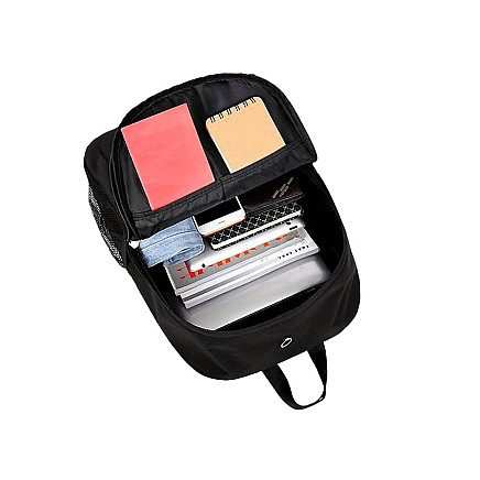 Atstarojoša pusaudžu skolas mugursoma ar USB pieslēgvietu, melna