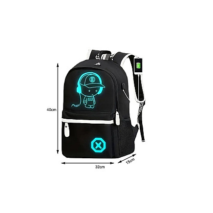 SCHOOL BACKPACK YOUTH MUSIC REFLECTIVE USB MULTICOMPARTMENT LUMINOUS