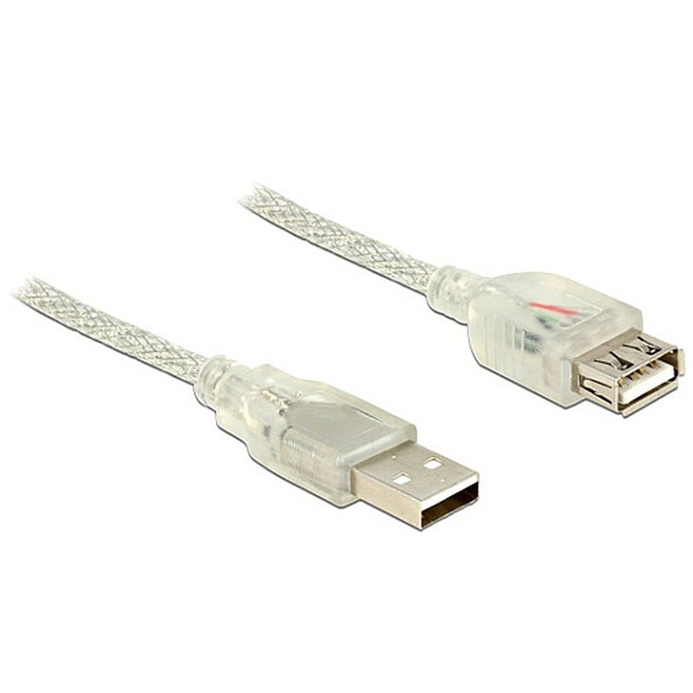 Delock Pagarinātājvads USB 2.0 Tips-A vīrietis > USB 2.0 Tips-A sieviete 0,5 m caurspīdīgs