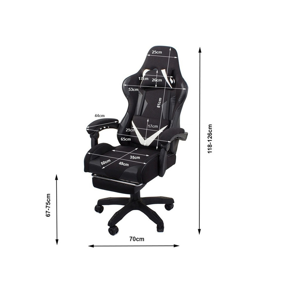 Grozāms spēļu krēsls ar izvelkamu kāju balstu, melns