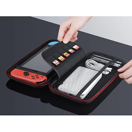 Aizsargmaciņš Nintendo Switch un Switch OLED konsolei ar nodalījumiem, melns