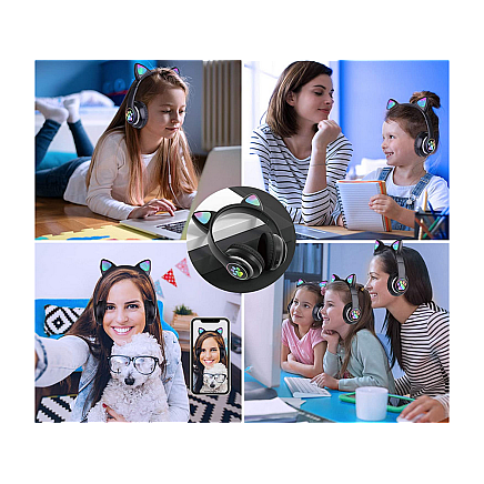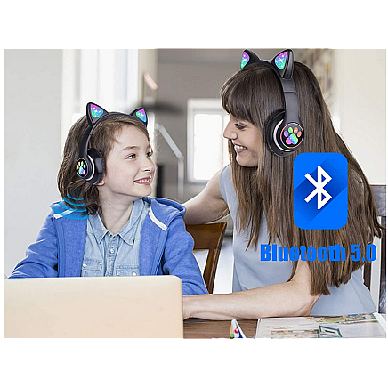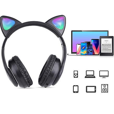 Bezvadu Bluetooth austiņas ar kaķu austiņām un LED apgaismojumu