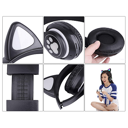 WIRELESS HEADPHONES BLUETOOTH RADIO FM MP3 CAT EARS LED BACKLIGHT