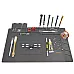 The multifunctional silicone service mat is a must-have for every amateur and professional DIY enthusiast. It makes performing all electronic repairs and soldering much easier. Resistant to high temperature (up to 500 degrees Celsius) and deformation. It has 4 magnetic points: for magnetizing screwdrivers, for parts and screws, as well as numerous compartments and a linear scale in centimeters and inches.