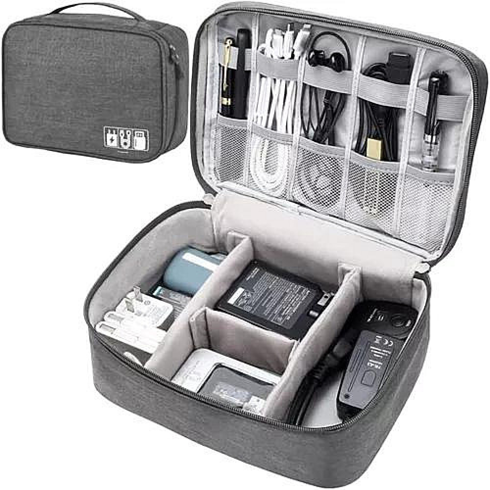 - LARGE NUMBER OF COMPARTMENTS - The cable case has several compartments and pockets that allow you to separately store different types of cables, chargers, headphones, etc. The pockets in the main part of the case are movable, and those on the flap have a mesh and elastic bands for easier organization .