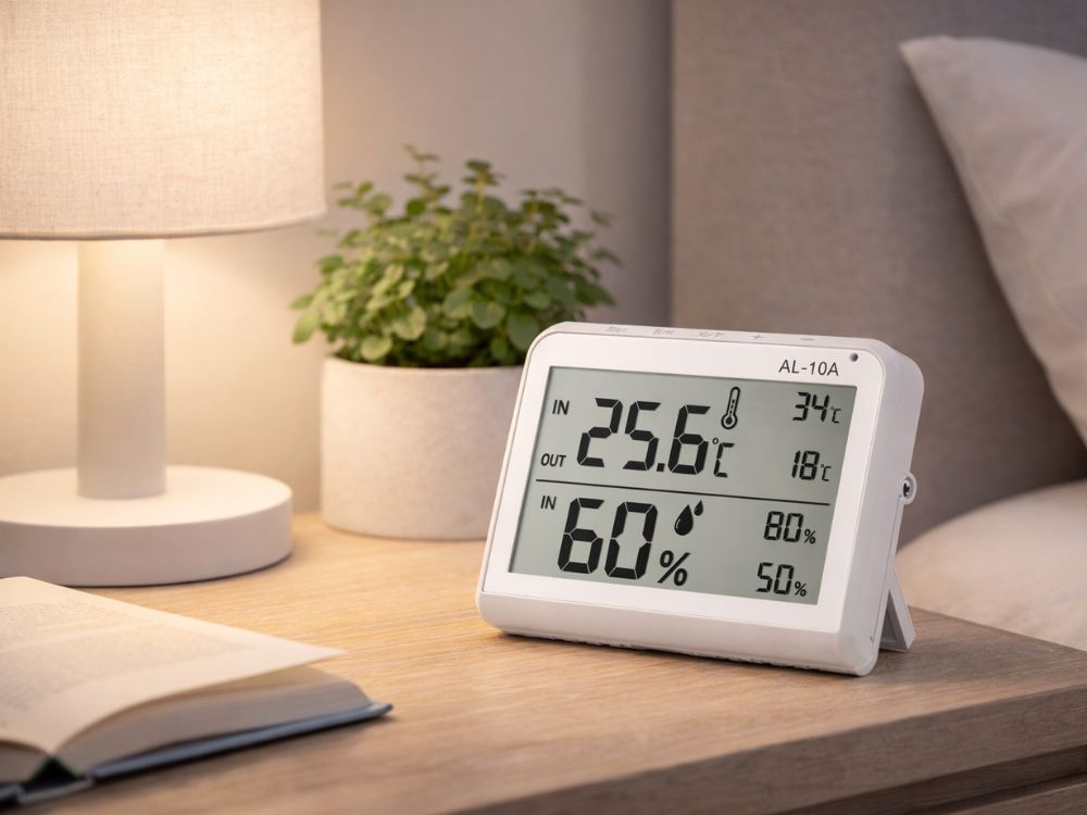 GAISA MITRUMU KONTROLEIebūvētais higrometrs ļauj uzraudzīt mitruma līmeni telpā. Tādējādi jūs viegli uzturēsiet atbilstošus apstākļus augiem, dzīvniekiem, uzglabājamajiem produktiem vai mājsaimnieku komfortam.
