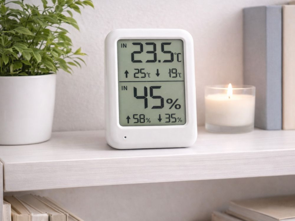 GAISA MITRUMU KONTROLEIebūvētais higrometrs ļauj uzraudzīt mitruma līmeni telpā. Tādējādi jūs viegli uzturēsiet atbilstošus apstākļus augiem, dzīvniekiem, uzglabājamajiem produktiem vai mājsaimnieku komfortam.