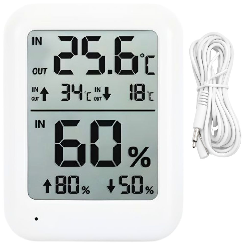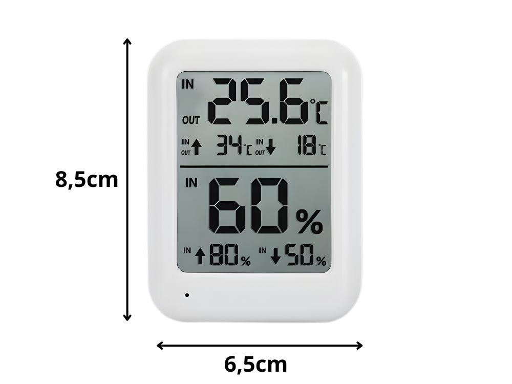 Ierīce ļauj vienlaikus mērīt temperatūru telpā un ārā, pateicoties vadu sensoram. Tas ir ideāls risinājums temperatūras kontrolei mājās, siltumnīcā, terārijā, noliktavā vai pagrabā.