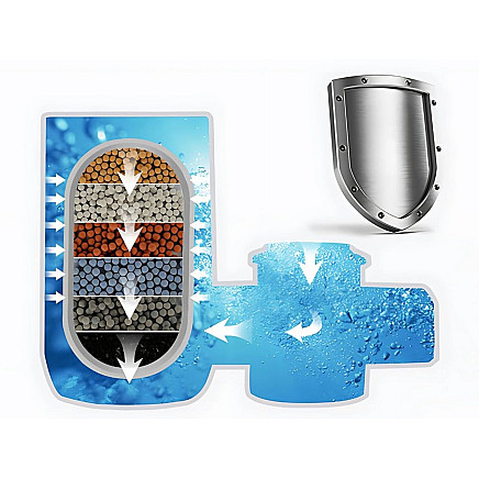 Filtrēšanas efektivitāte: noņem hloru, smagos metālus, nogulsnes un baktērijas.