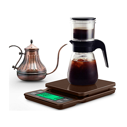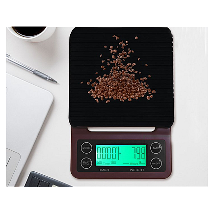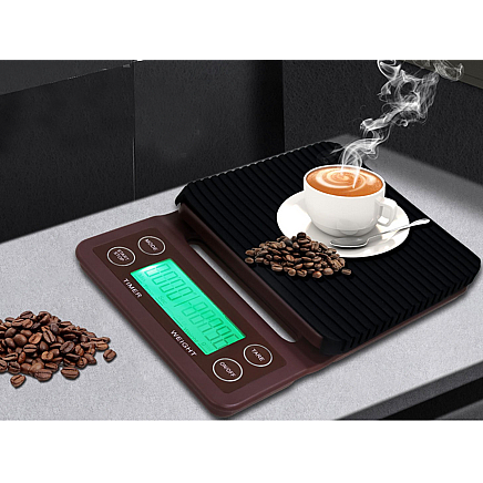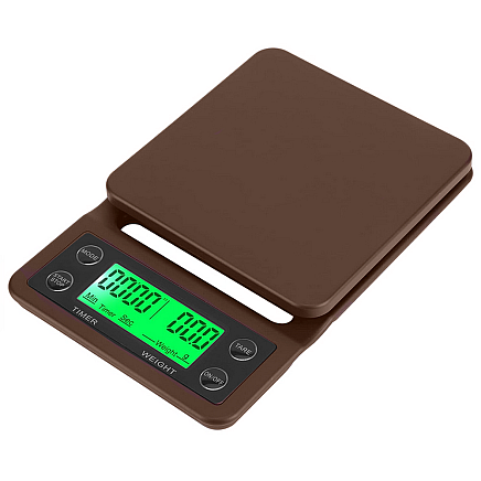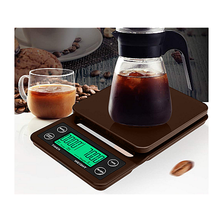 Precīzie elektroniskie kafijas virtuves svari ar taimeri 5kg 0,1g, brūni