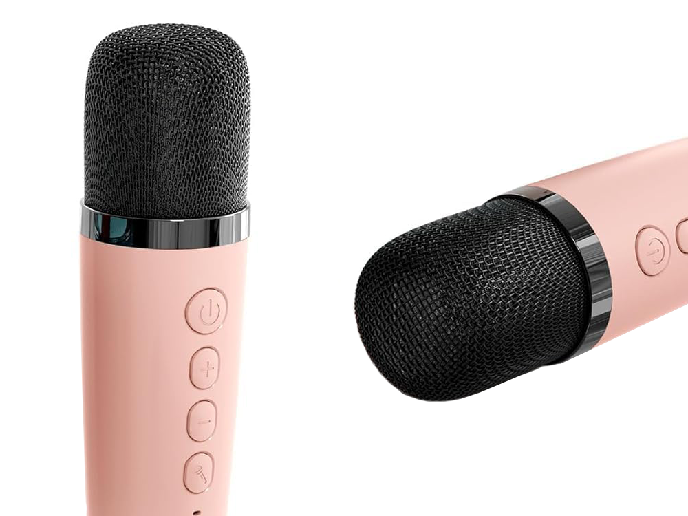 Bezvadu mikrofons ir aprīkots ar pogām skaļuma un efektu vadībai, kas nodrošina pilnīgu kontroli pār skaņu.
