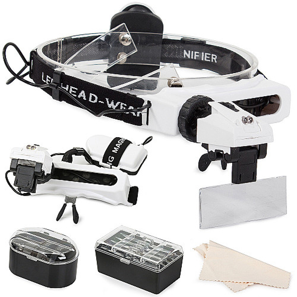 TheLEDs can be adjusted in angle to suit your needs. The entire mechanism is based in the form of a comfortable rubber headband At the point of contact with the forehead, the magnifier is padded with a very soft material that is gentle on the skin.