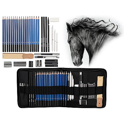 A professional set of pencils and drawing accessories, this is a must for amateur and professional artists