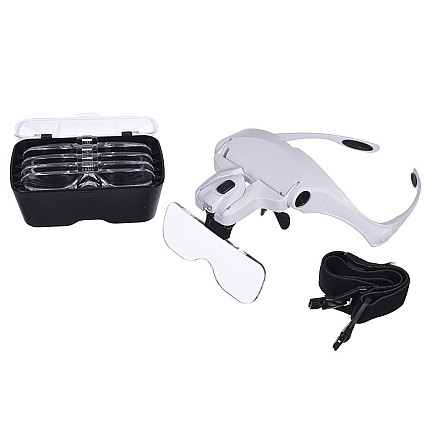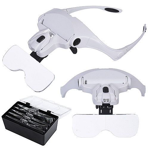 Galvas lupa ar 2 LED un 5 maināmām lēcām, 3,5x