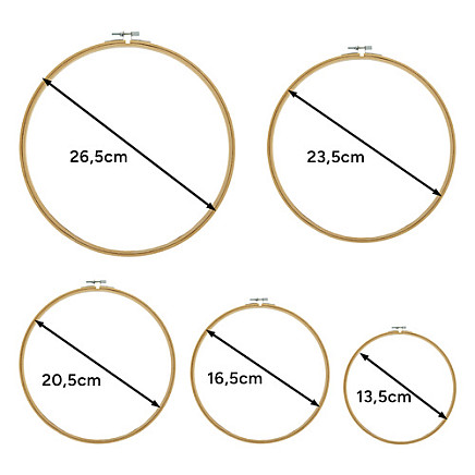 - hoop diameter: 11.3 cm, 14.5 cm, 18.5 cm 22.5 cm, 25.6 cm
