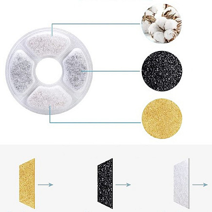 - 3 COMPONENT FILTER – triple water filter consists of: cotton, ion exchange resin and activated carbon. So it will work well to remove impurities, animal hair, dirt, food leftovers, sediments, chlorine and will enrich drinking water.