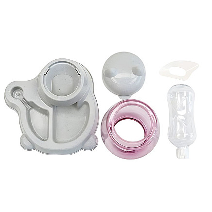 The feeder is made of durable, pet-safe plastic. All components are easy to dismantle and wash. The non-slip feet prevent the unit from moving when eating or drinking.