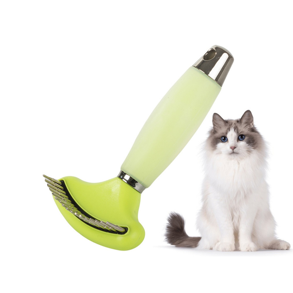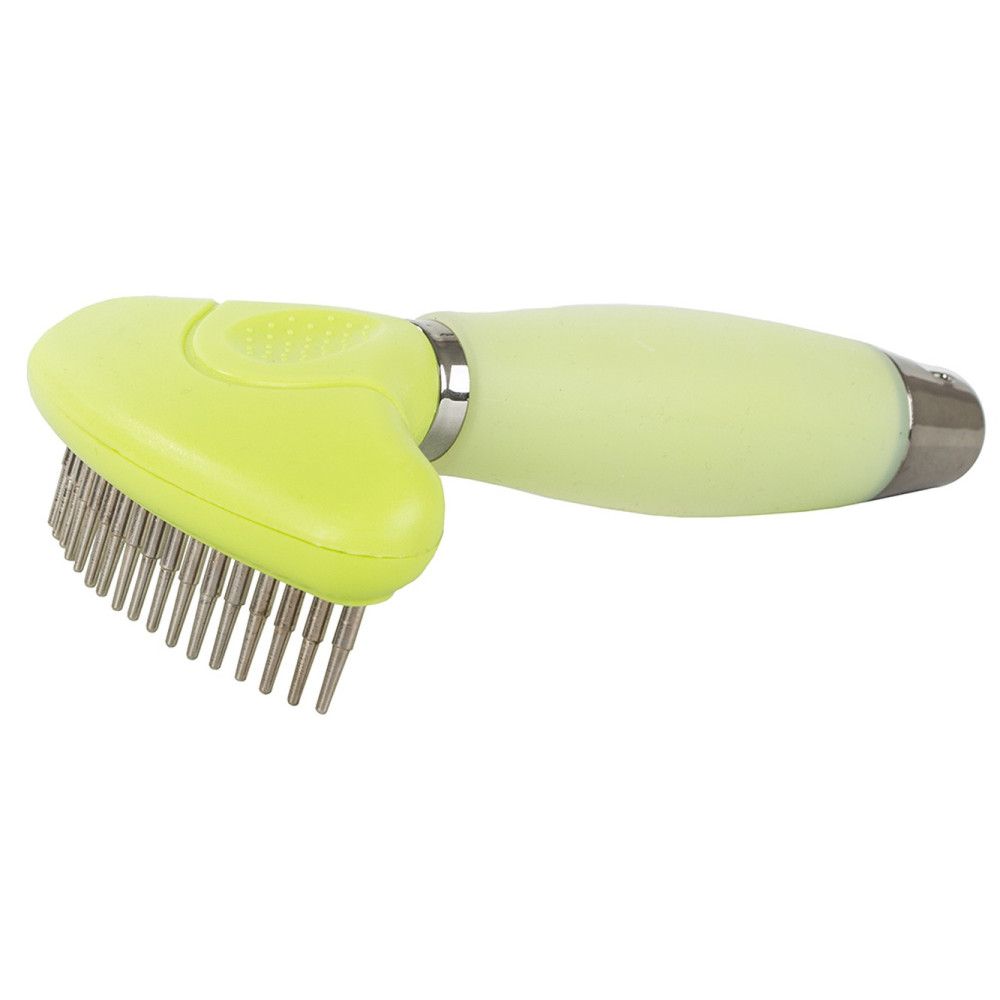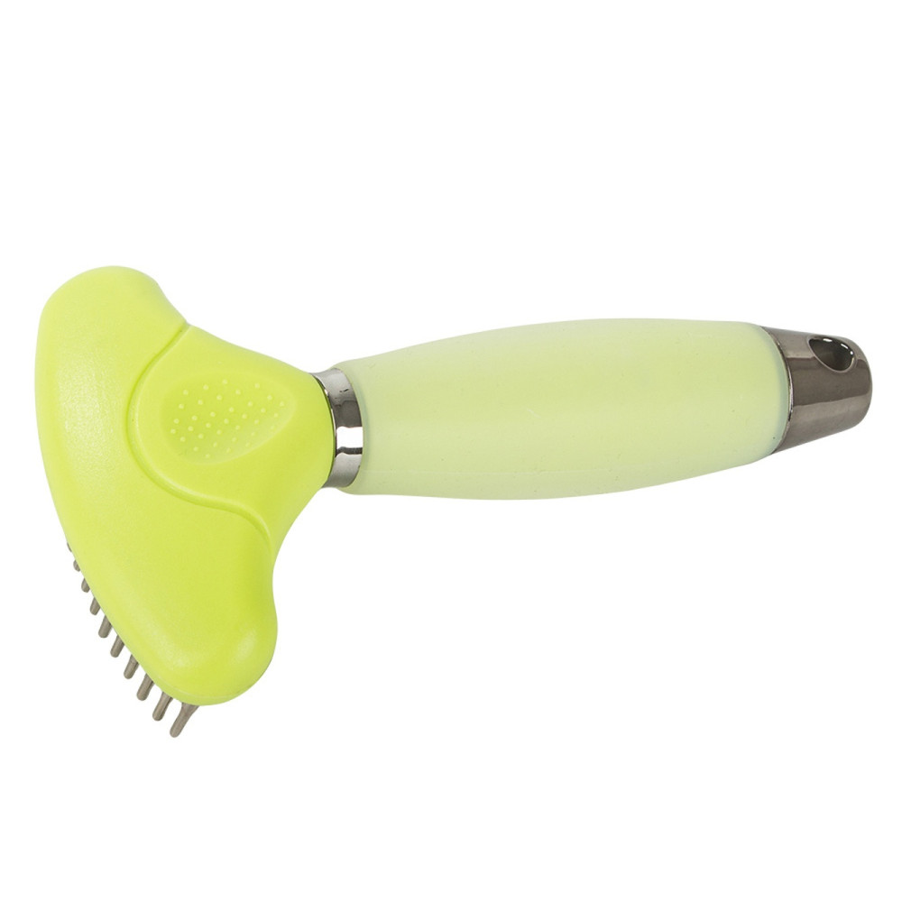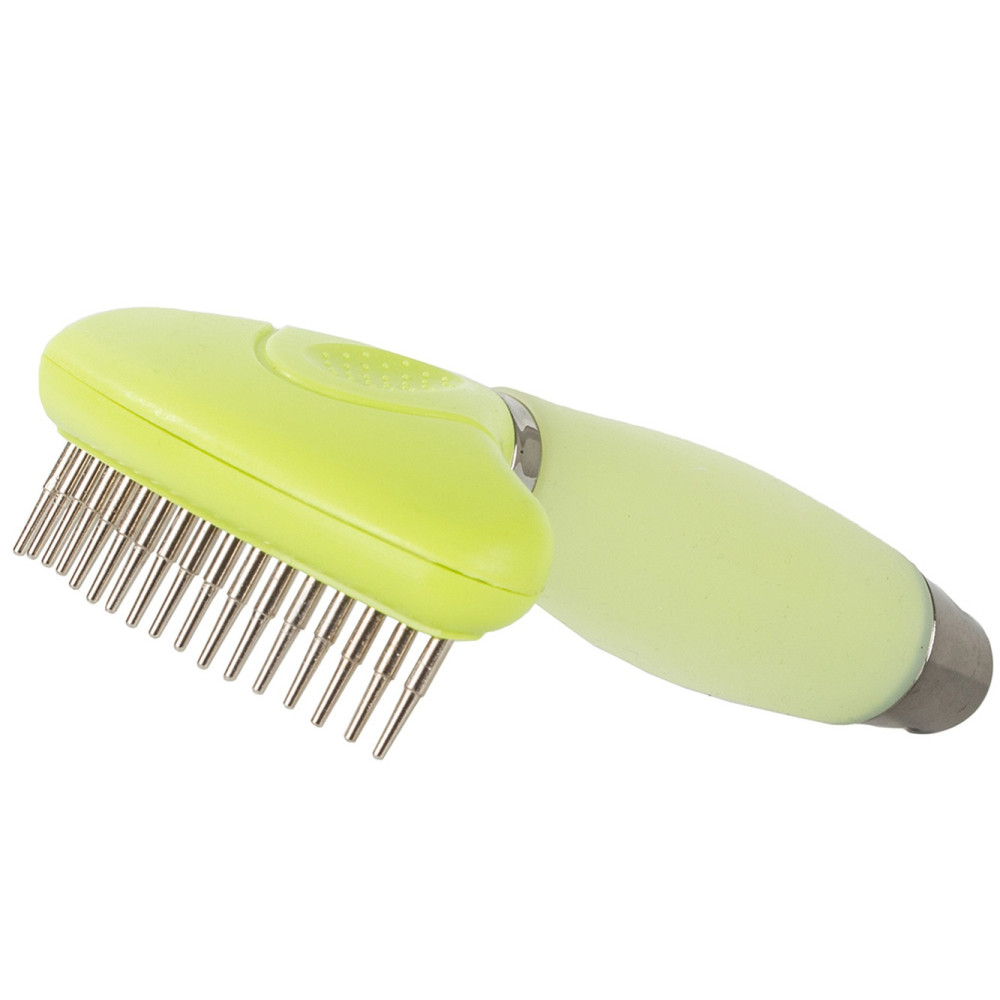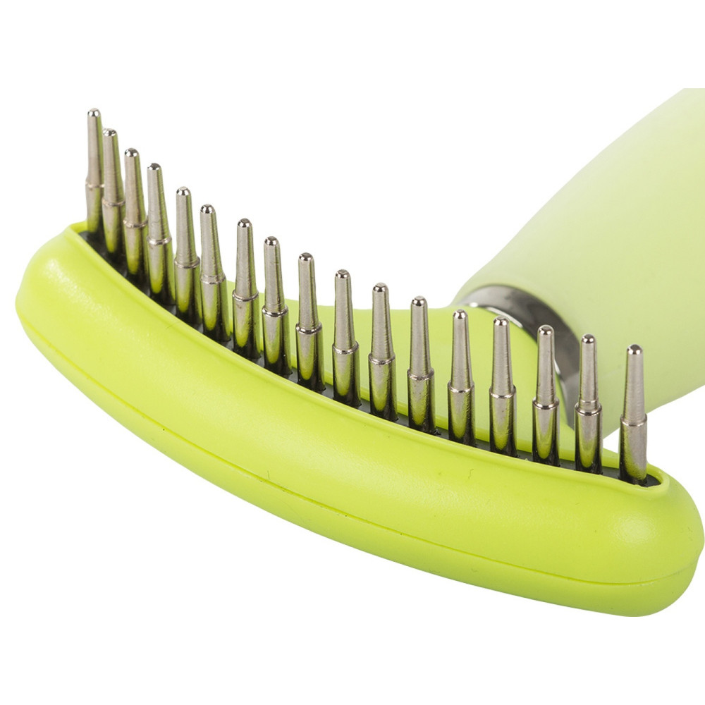 Divpusējs trimmeris-grābeklis suņiem un kaķiem pavilnas izķemmēšanai, zaļš