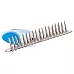 The trimmer's teeth are made of durable and stainless steel. The handle is covered with a rubber material, so it will not slip out of your hand.