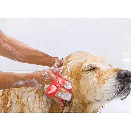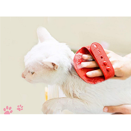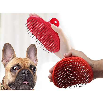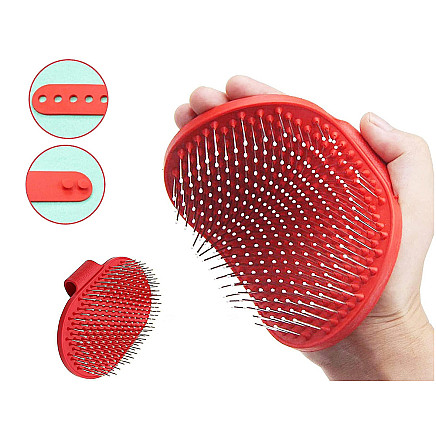 Mīksta masāžas suka suņiem un kaķiem spalvas kopšanai, sarkana
