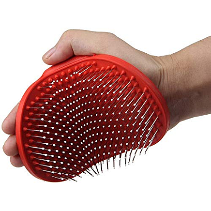 The brush has ball-tipped needles to prevent hurting your pet during brushing and to make combing a pleasant experience. The handle is made of rubber and does not slip out of your hand. It is adjustable with a rubber strap.