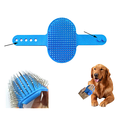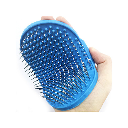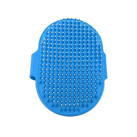 Mīksta masāžas suka suņiem un kaķiem, spalvas un pavilnas ķemme, zila