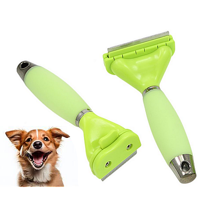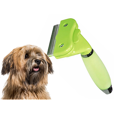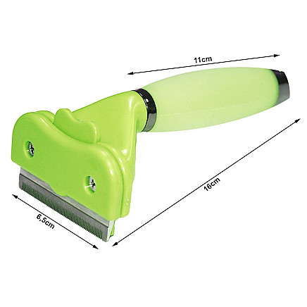Trimmeris dzīvniekiem pavilnas izķemmēšanai, nerūsējošā tērauda suka, zaļš