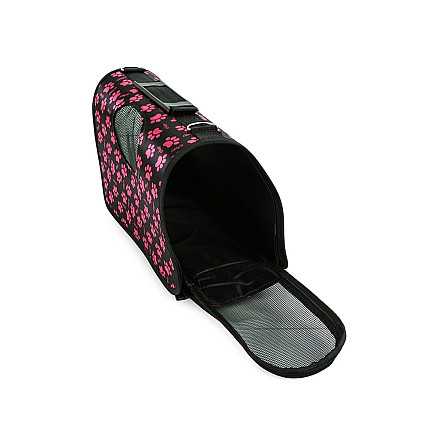 Liela mājdzīvnieku transporta soma melna ar ķepu zīmējumu