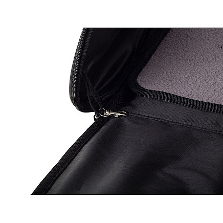 It is equipped with comfortable handles for carrying in the hand. It also has an effective ventilation system through two large, airy grilles and a window. The bag has two zips that allow it to be opened or closed quickly for convenient placement of your pet. Inside, the bag also has a snap hook to which a collar or harness can be attached. In addition, the carrier bag has a pocket for various small items and an easily removable insert.