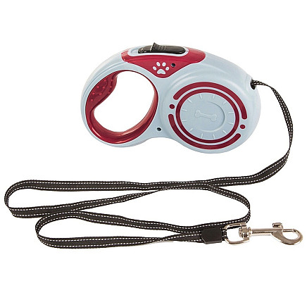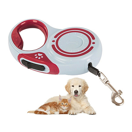 Automātiska izturīga pavada ar bloķēšanu suņiem, 5m, līdz 15kg, sarkana
