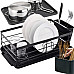 - TRAY WITH EASY WATER DRAIN - The black dish drying rack has a specially designed tray with easy water drainage. By placing the drainer near the sink, the water will flow independently through the side spout. From now on, you don't have to worry about pouring water from the tray, just place it next to the sink!