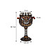 It rests on a stand decorated with Old Norse runes, the leg of the goblet is black and covered with an intricate runic pattern The goblet reflects the Viking ship Drakkar and features an embossed portrait of a Nordic warrior.